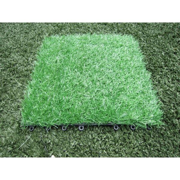Generally our size is 30x 30 x 3.5cm, our color is green/ green+yellow, main grass is made by PE, supporting grass is made by PP.The turf fiber is 12800Dtex,the height of turf is 25mm. 11pcs will be a SQM.